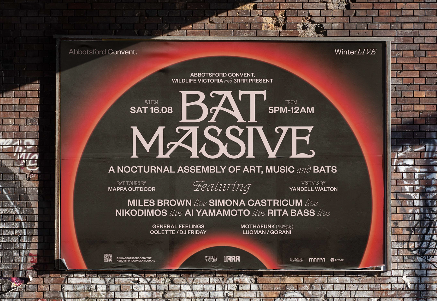 Bat Massive: A Nocturnal Assembly of Art, Music, and Bats, presented by Abbotsford Convent, Wildlife Victoria, and 3RRR